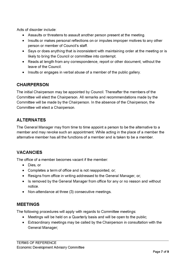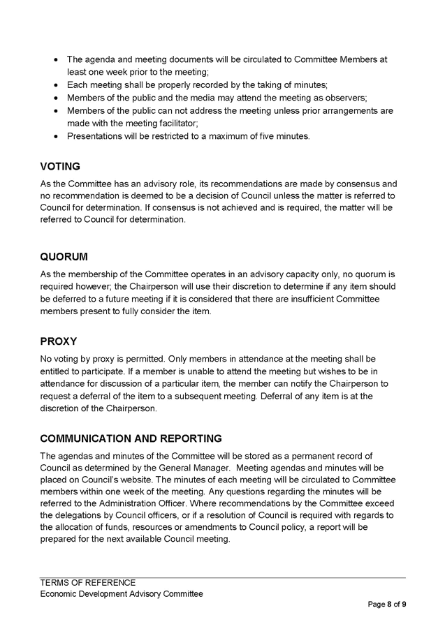 Updated Terms of Reference Economic Development Advisory Committee |