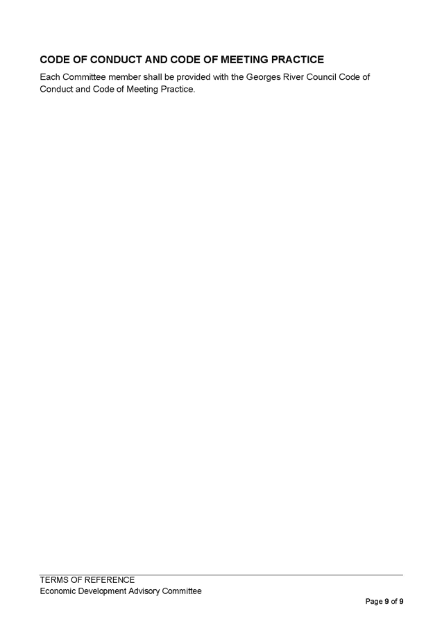 10. The Committee’s key purpose is to advise on the development, implementation, monitoring and review of the Georges River Economic Development Strategy.