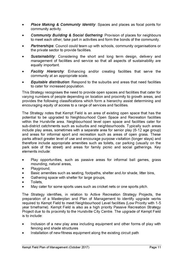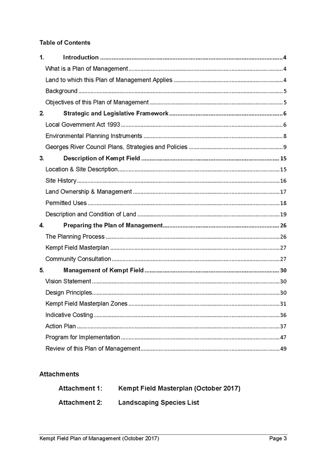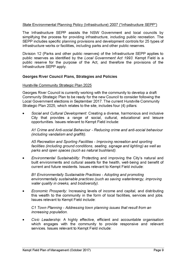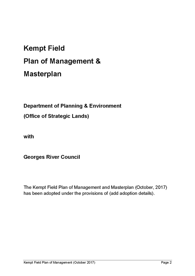 Georges River Council - Environment and Planning Standing Committee Meeting - Monday, 13 November 2017 ENV009-17 Kempt Field Plan of Management - Community Consultation Outcomes and Finalisation [Appendix 1] Final Kempt Field Plan of Management October 2017 |