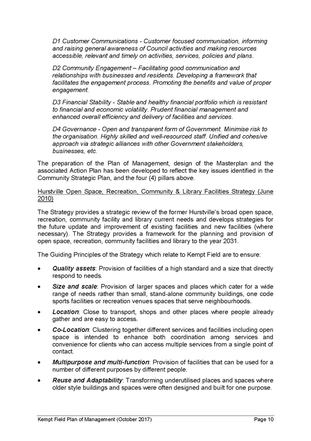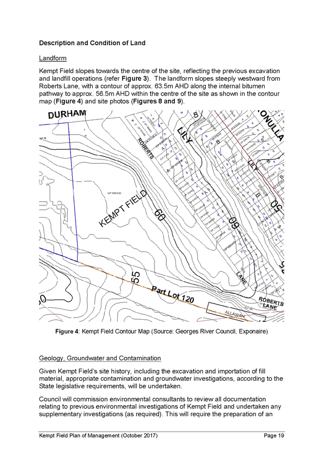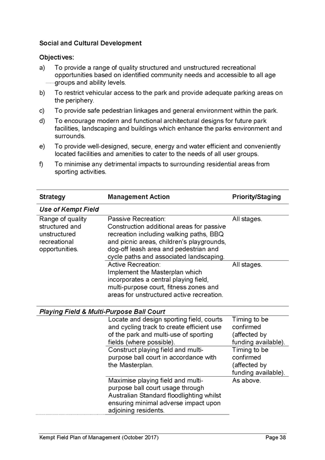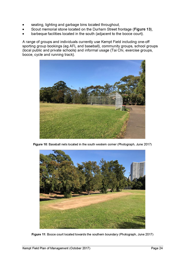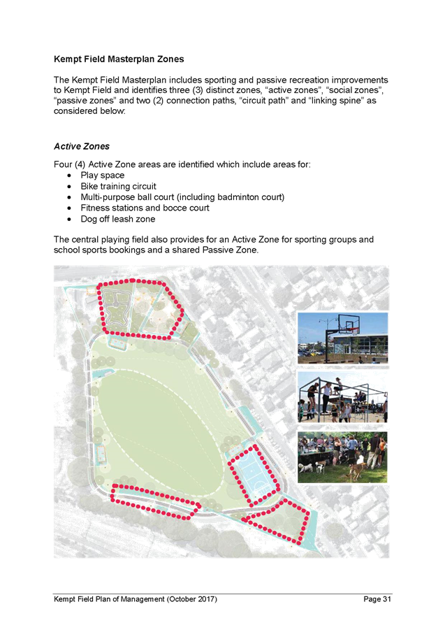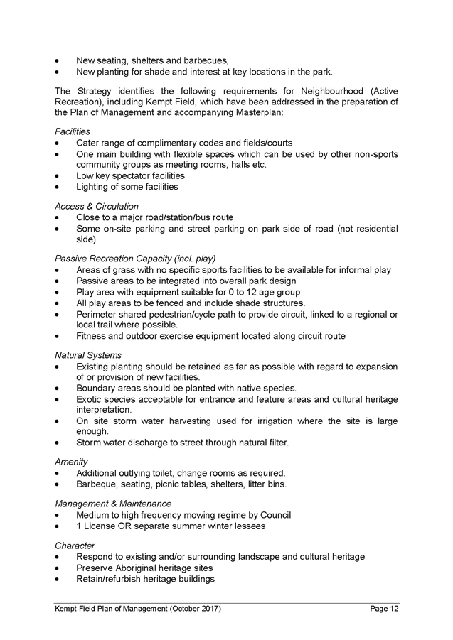 5. The report recommends that the Kempt Field Plan of Management (October 2017) and Masterplan (October 2017) be adopted and finalised in accordance with the requirements of the Local Government Act 1993.