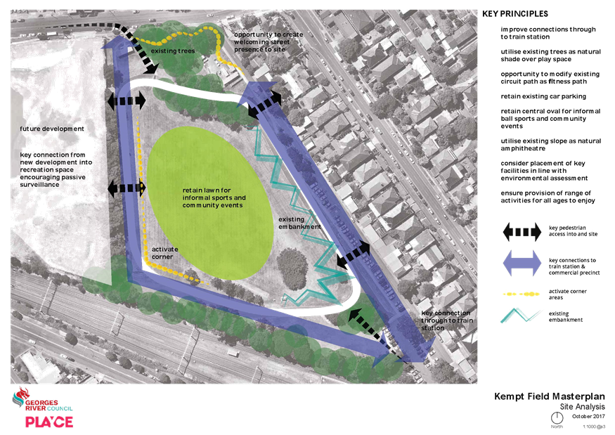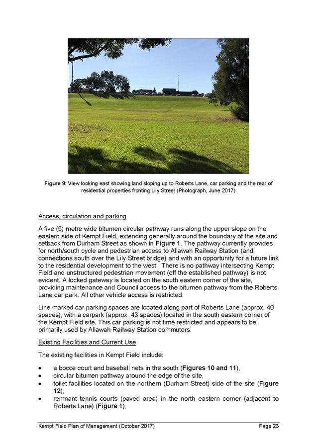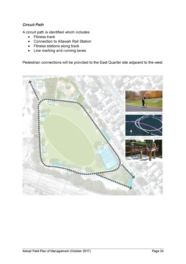· The provision of a new footpath between East Quarter and Allawah Railway Station through Kempt Field to accommodate pedestrian traffic,