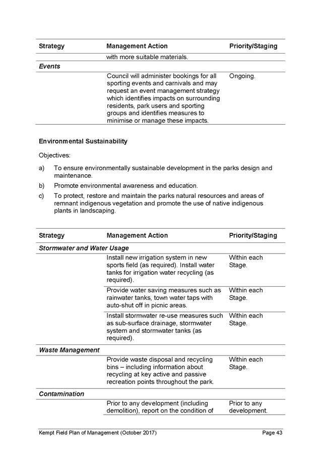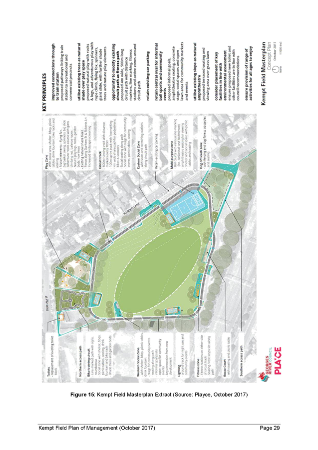 15. A copy of the revised Kempt Field Plan of Management (October 2017) and the revised Masterplan (October 2017) are included in Attachments 1 and 2.