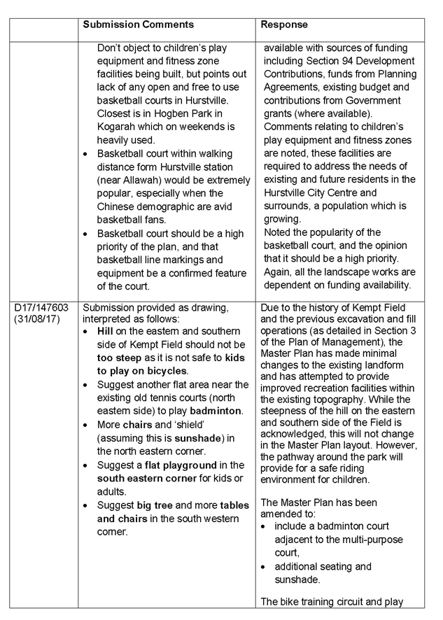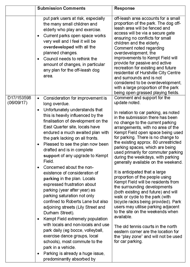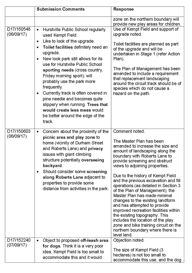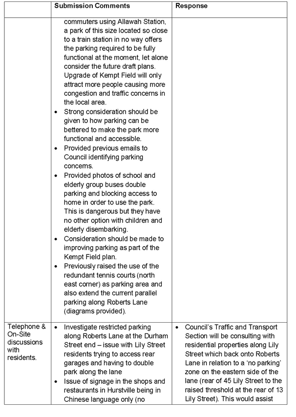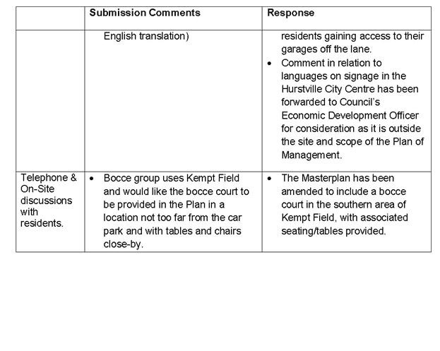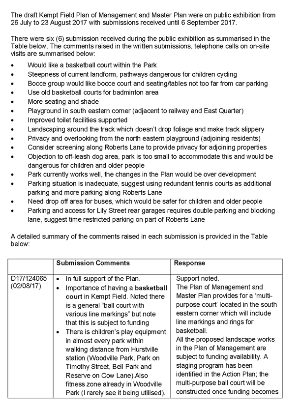 Kempt Field Plan of Management Public Exhibition Summary of Submissions |