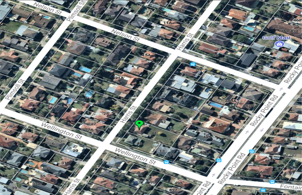 13. The subject site is Lot 9, Section 2, DP 975493 and known as 44 Harris Street Sans Souci, situated between Nelson Street and Wellington Street. The site currently contains a single storey fibro cottage and shed (Refer Photo 1 below). The existing driveway is located near the western corner of the site.