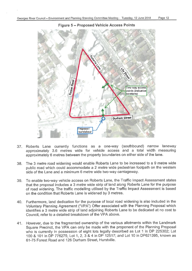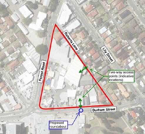 b. Vehicle access to and from the Landmark Square Precinct will be provided on Roberts Lane and Durham Street, thereby reducing congestion on Forest Road; and