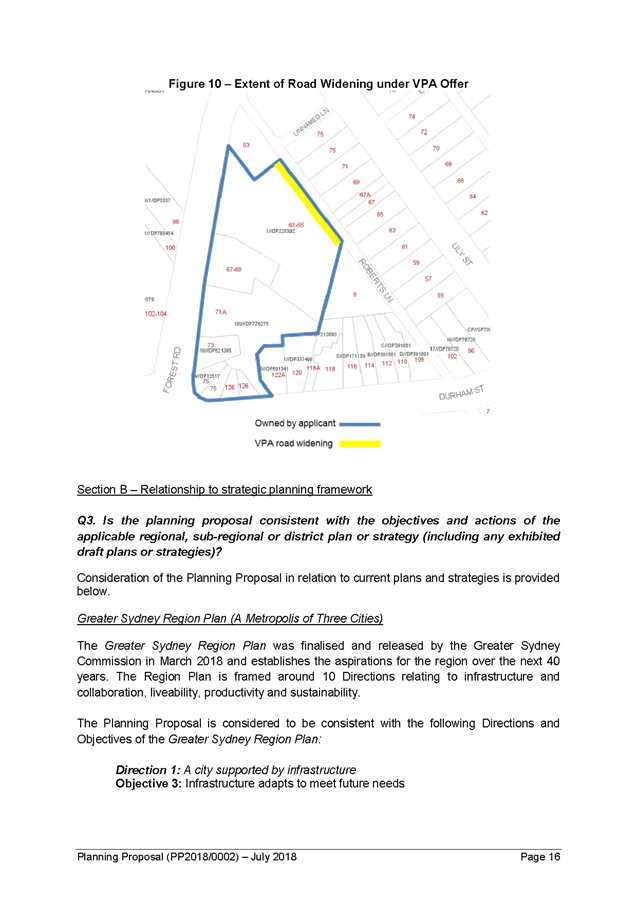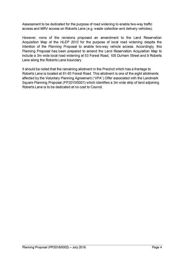 74. As detailed above in Section 4.2, the 3m wide road widening at the Roberts Lane boundary of 61-65 Forest Road will be executed in accordance with the VPA.