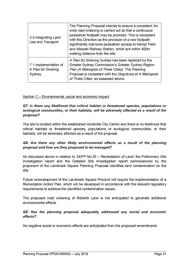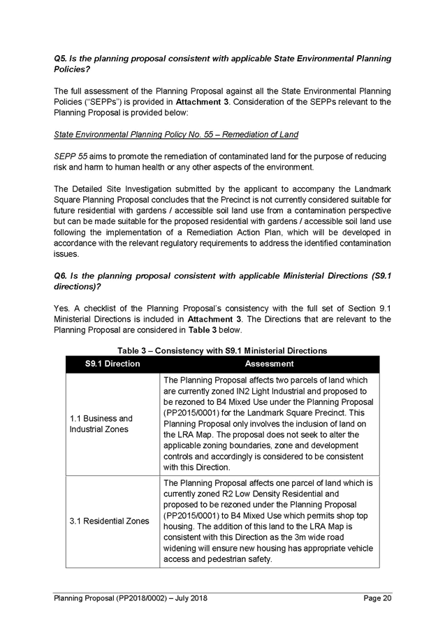 69. The Planning Proposal is considered to be consistent with all relevant Ministerial Directions as assessed in Table 3 below: