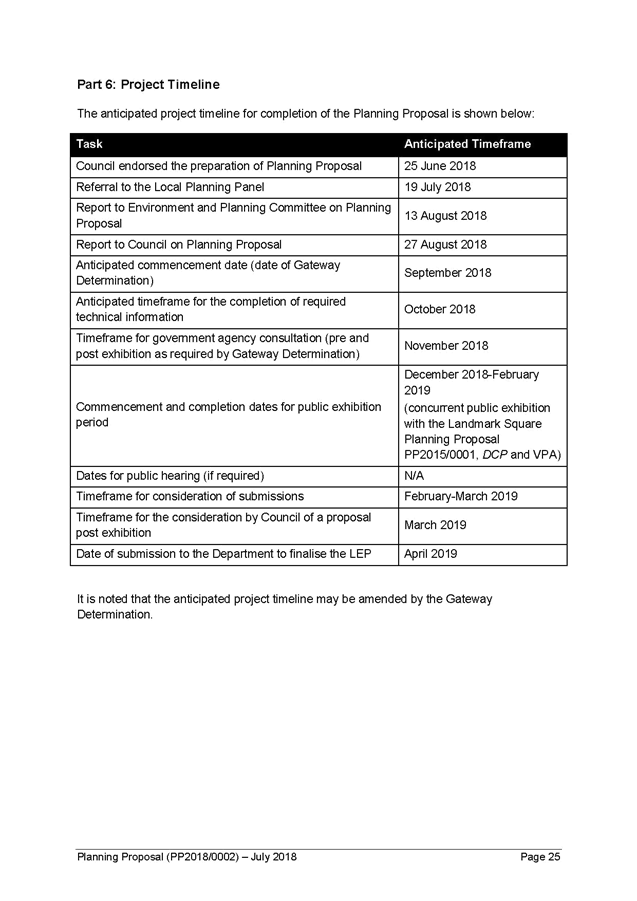 82. The anticipated project timeline for completion of the Planning Proposal is shown below:
