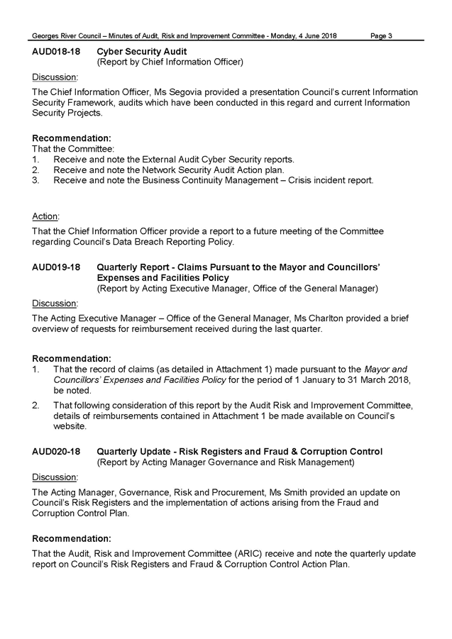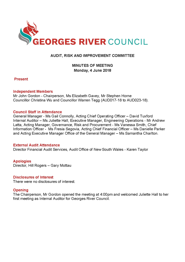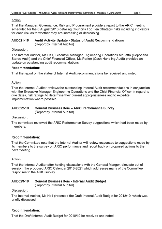 FIN073-18 Audit, Risk and Improvement Committee Minutes from 4 June 2018