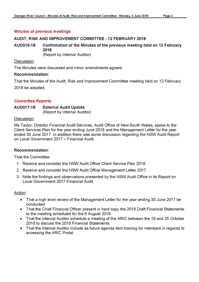 Georges River Council – Finance and Governance Committee Meeting - Monday, 10 September 2018 Page 2