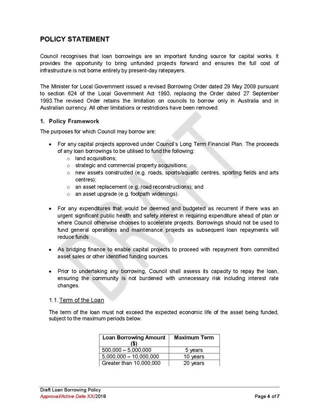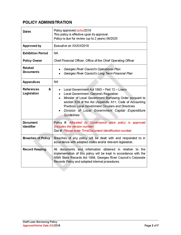FIN076-18 Draft Georges River Council Loan Borrowing Policy