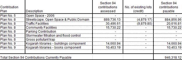A Section 7.12 contribution has been levied on the subject development pursuant to the Georges River Council Section 94 Contributions Plan.