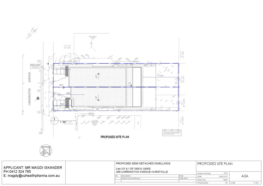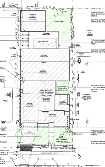 16. Demolition of the existing structures, tree removal and construction of a new two storey attached dual occupancy including a front fence and landscaping works at 45 Burgess Street, Beverley Park. The proposed site plan is shown in Figure 2 below.