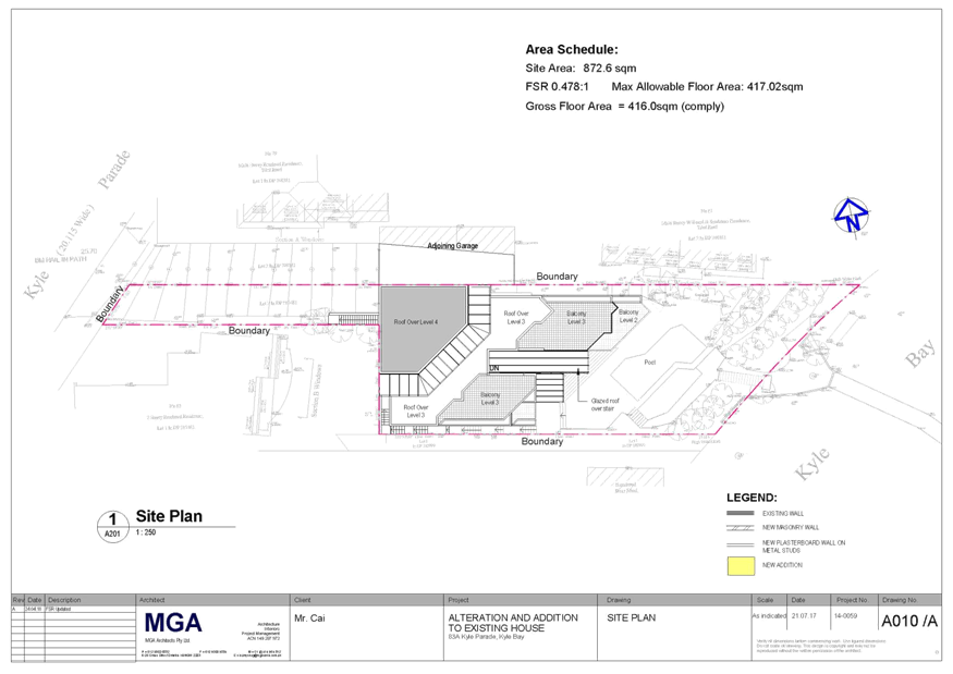 69. Clause 98A - Erection of Signs - Requires the erection of signs on site and outlines the details which are to be included on the sign. The sign must be displayed in a prominent position on site and include the name and contact details of the PCA and the Principal Contractor.