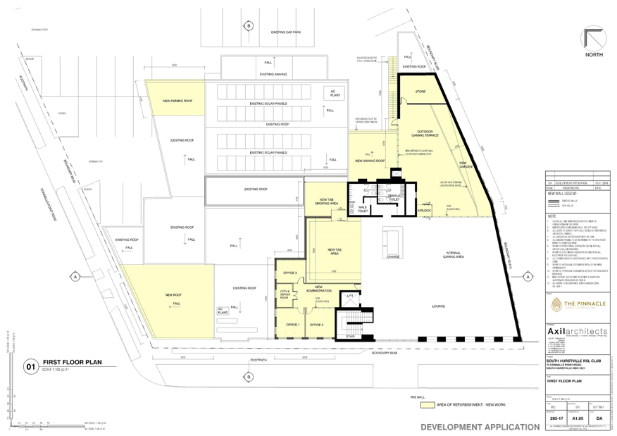 54. Outdoor Gaming/Smoking Area - Acoustic Ceiling - The ceiling of the outdoor gaming/smoking area above the poker machines is to be acoustically treated by the addition of acoustic tiles.